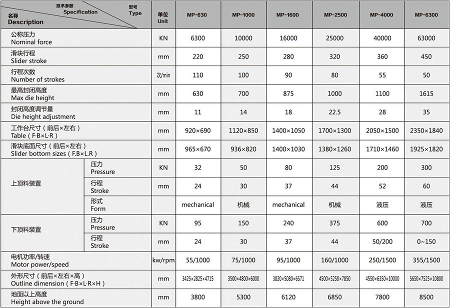 MP系列熱模鍛壓力機是引進德國先進技術生產的改進型系列產品, 擴大了壓力機使用范圍。